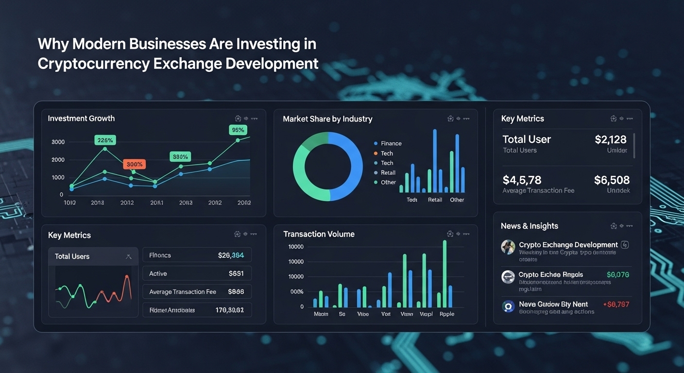 Modern businesses are investing in cryptocurrency exchange development because it offers strong growth opportunities, competitive advantages, new revenue models, and access to the fast-growing digital economy. With the rising popularity of cryptocurrencies, companies see crypto exchanges as essential tools for global expansion, secure financial services, and participation in the future of digital finance.