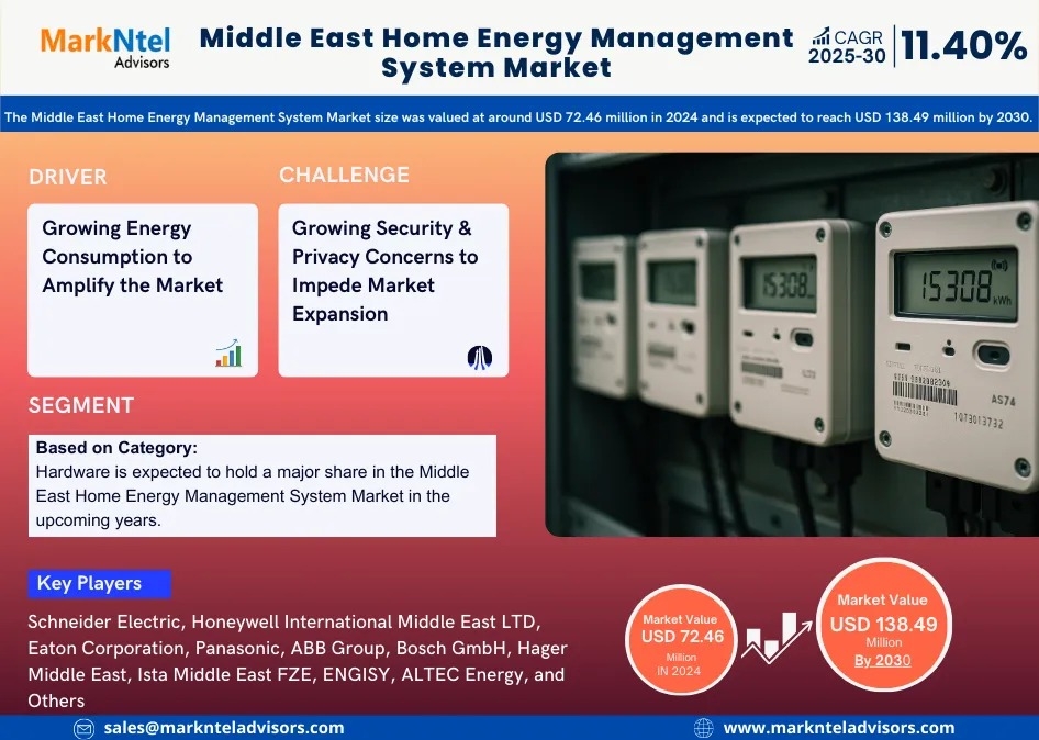 MarkNtel Advisors, a leading market research and consulting firm, has announced the release of its latest study titled Middle East Home Energy Management System Market Research Report: Forecast (2025-2030). This report provides a detailed assessment of the Middle East Home Energy Management System Market, covering its evolving dynamics, emerging trends, key growth drivers, major challenges, and competitive landscape.