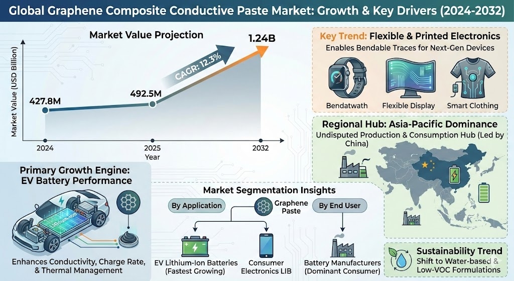 Global graphene composite conductive paste market, a cornerstone material for next-generation electronics and energy storage, is on the cusp of remarkable growth. Valued at USD 427.8 million in 2024, the market is projected to grow from USD 492.5 million in 2025 to USD 1.24 billion by 2032, exhibiting an impressive compound annual growth rate (CAGR) of 12.3% during the forecast period. This explosive growth is fundamentally driven by the material's critical role in enhancing the performance of lithium-ion batteries for electric vehicles (EVs) and enabling advanced flexible and printed electronics.