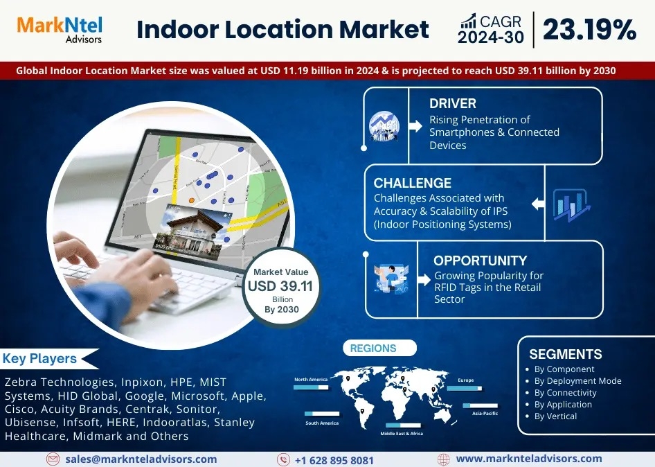 MarkNtel Advisors, a leading market research and consulting firm, has announced the release of its latest study titled Indoor Location Market Research Report Forecast (2025-2030). This report provides a detailed assessment of the Indoor Location Market, covering its evolving dynamics, emerging trends, key growth drivers, major challenges, and competitive landscape.