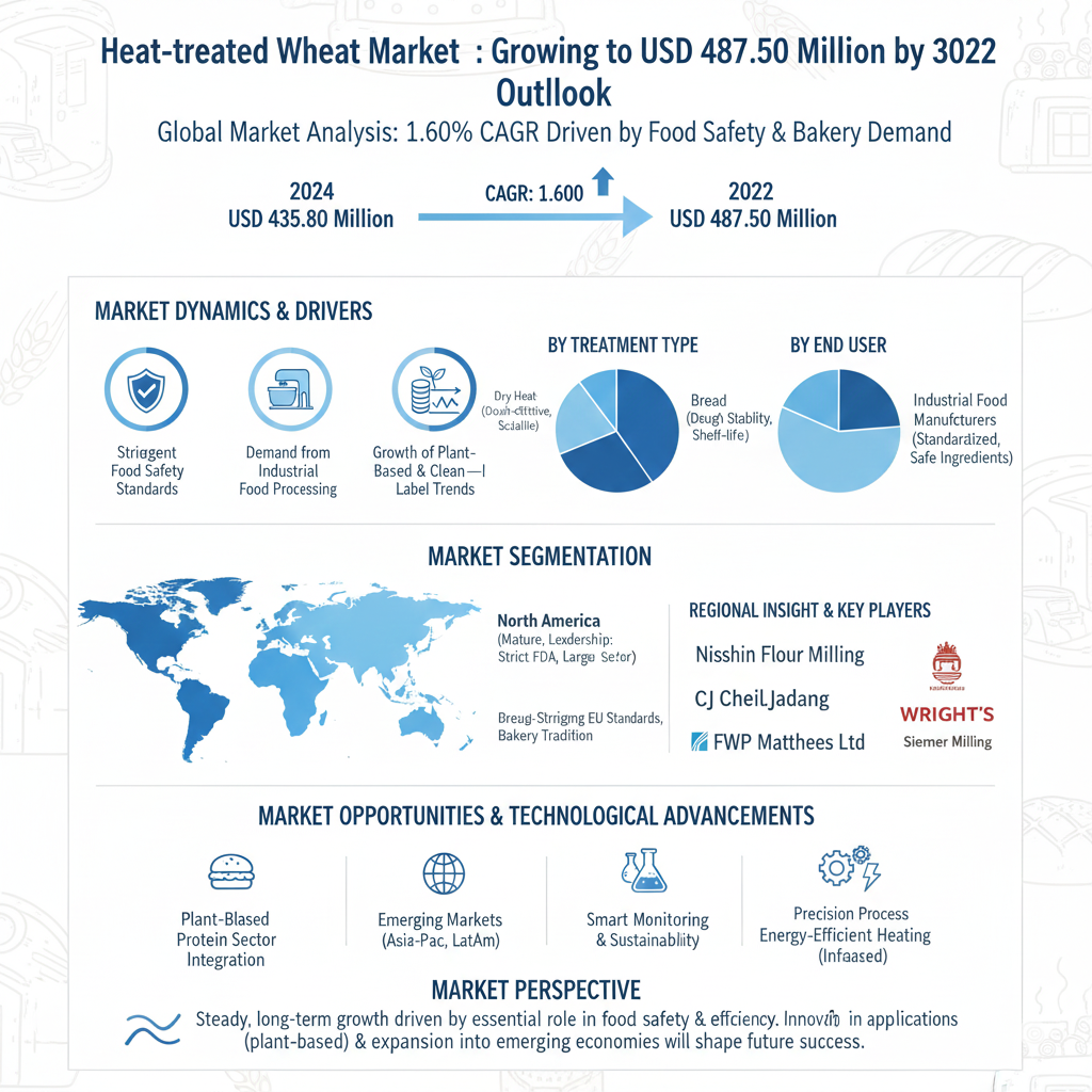 Heat-treated Wheat Flour market represents a specialized segment within the food ingredients industry, defined by flour that undergoes controlled thermal processing to modify its functional and safety properties. This treatment, applied via dry or wet methods, enhances characteristics like water absorption, viscosity, and microbial stability, making it a critical ingredient for consistent, high-quality food production. Valued at USD 435.80 million in 2024, the market is projected to grow steadily to USD 487.50 million by 2032 at a 1.60% CAGR. Growth is primarily fueled by stringent global food safety regulations, the expanding industrial bakery sector's need for reliable ingredients, and the rising demand for clean-label products with extended shelf life.