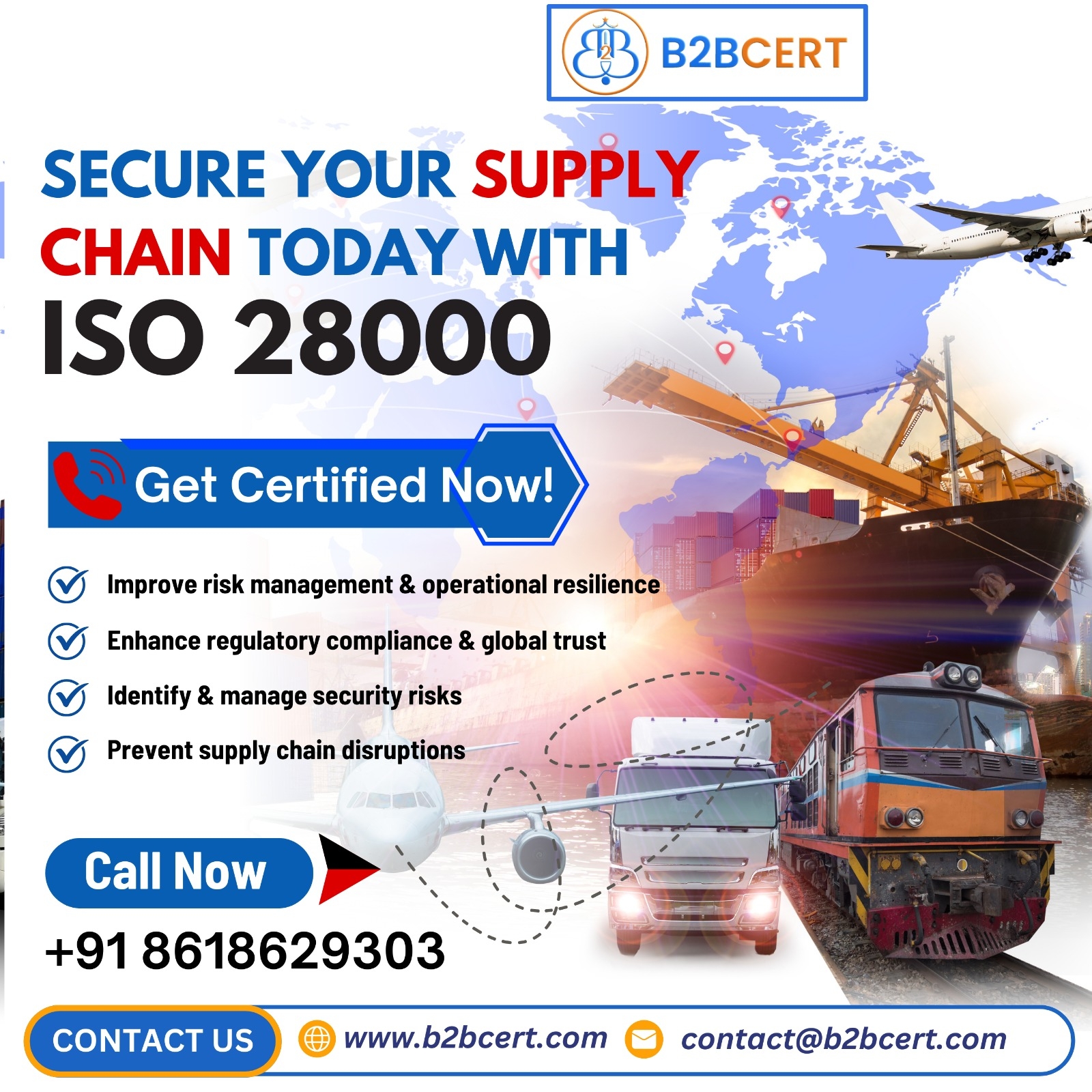 B2BCERT is a trusted provider of ISO 28000 Certification in Dubai, offering end-to-end consulting and implementation support for supply chain security management systems. With experienced ISO 28000 Consultants in Dubai, B2BCERT assists organizations with gap assessments, ISO 28000 implementation, documentation, training, and audit readiness. Their practical and business-focused approach ensures that security controls are effective, scalable, and aligned with operational realities. B2BCERT supports organizations throughout the certification process and beyond, helping them maintain secure, compliant, and resilient supply chain operations in Dubai.