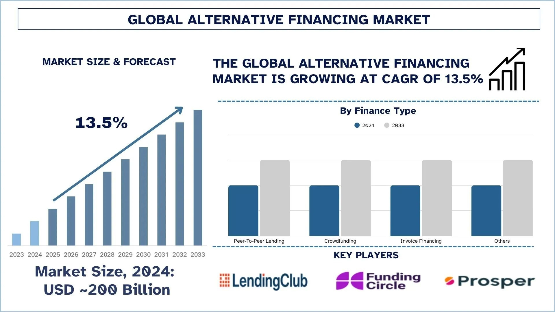 According to a new report by UnivDatos, the Alternative Financing Market is expected to reach USD billion in 2033 by growing at a CAGR of 13.5%.