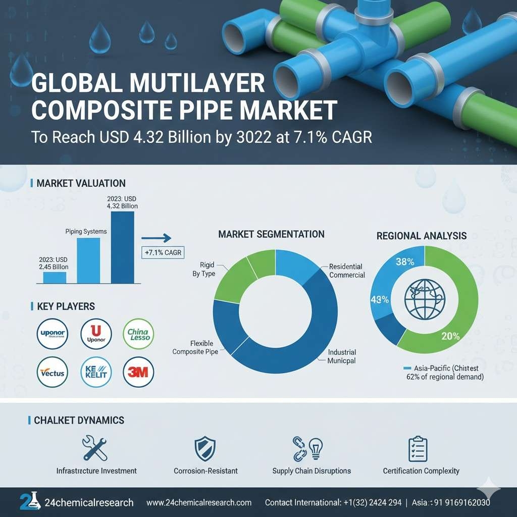 Global Multilayer Composite Pipe Market is experiencing robust expansion driven by increasing infrastructure investments and demand for corrosion-resistant piping solutions. Valued at USD 2.45 billion in 2023, the market is projected to grow at a CAGR of 7.1% through 2032, reaching USD 4.32 billion. This growth stems from multilayer pipes' superior performance in water distribution, HVAC systems, and industrial fluid handling applications where metal alternatives face durability challenges.